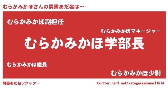 | ヘコむあだ名 | 『むらかみかほ(遠い目)』『豆乳』 |