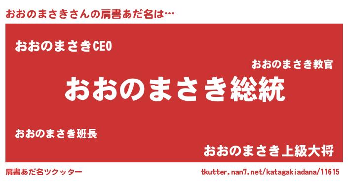 | 意味不明あだ名 | 『自称おおのまさき』 |