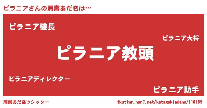 | ヘコむあだ名 | 『ピラニア(笑)』『ピラもー』 |