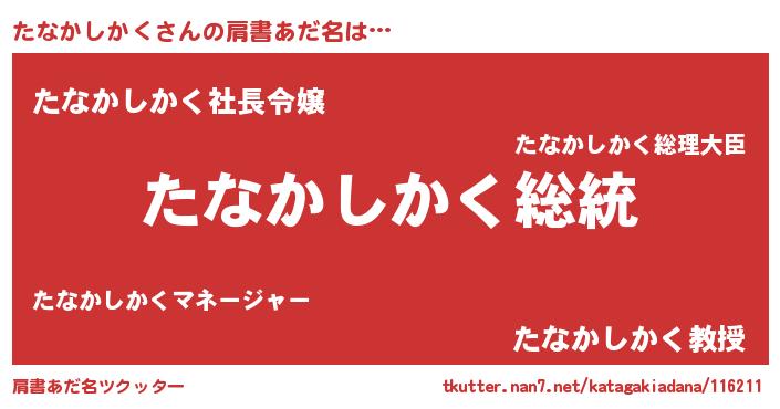 | 女子向けラノベタイトル風あだ名 | 『たなかしかくなんてお断りですっ。』 |