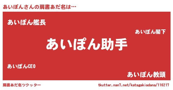 | ヒーロー風カッコイイあだ名 | 『慈愛の使者あいぽん』『ネオアイポン』 |