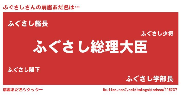 | 男性向けラノベタイトル風あだ名 | 『やはりふぐさしの青春ラブコメはまちがっている 』 |