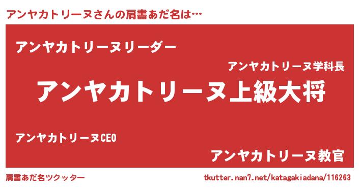 | 欧米人風あだ名 | 『トリンドルアンヤカトリーヌ』 |