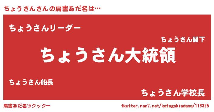 | 意味不明あだ名 | 『ちょうさんフォーエバー』 |