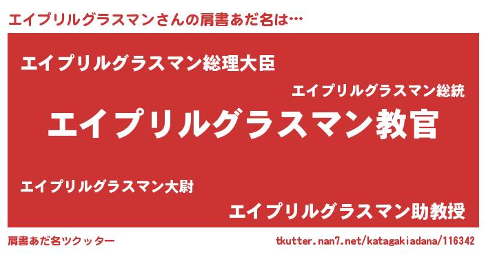 | 意味不明あだ名 | 『住所不定無職エイプリルグラスマン(53歳)』 |