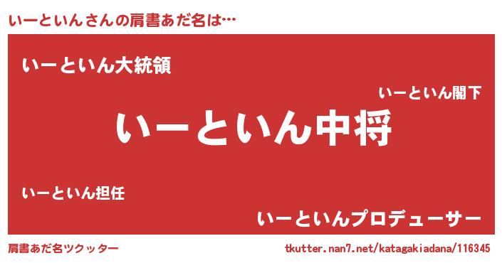 | 女子向けラノベタイトル風あだ名 | 『いーといんの玉の輿計画!』 |