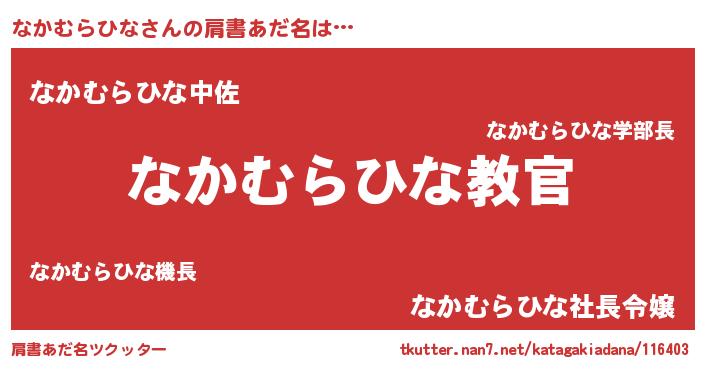 | 男性向けラノベタイトル風あだ名 | 『魔弾の王となかむらひな』 |