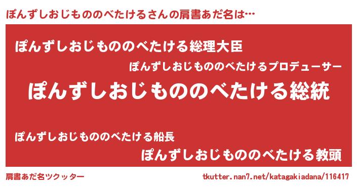 | 意味不明あだ名 | 『自称ぽんずしおじもののべたける』 |