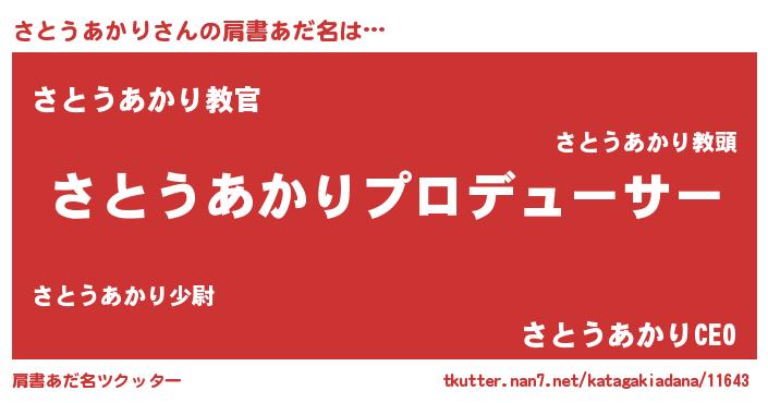 | ヒーロー風カッコイイあだ名 | 『仮面サトダー』『スーパーサトウアカリ』 |