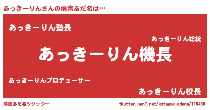 | 男性向けラノベタイトル風あだ名 | 『緋弾のアッキーリン』 |