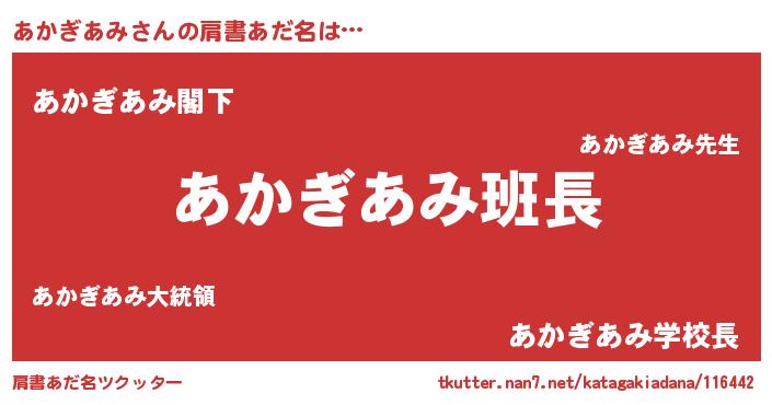 | 女子向けラノベタイトル風あだ名 | 『あかぎあみ様がみてる』 |