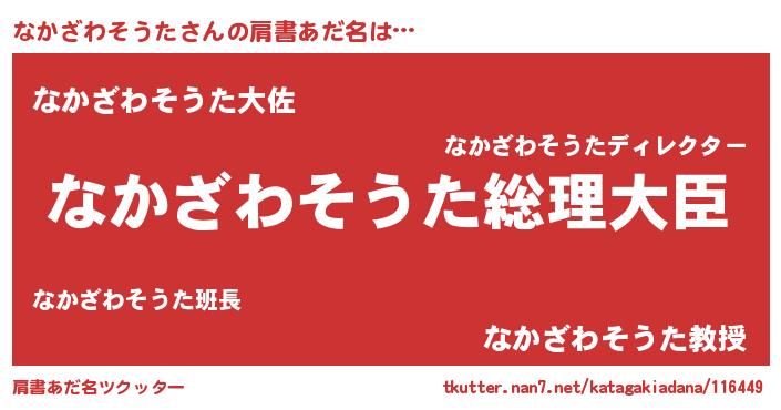 | 男性向けラノベタイトル風あだ名 | 『やはりなかざわそうたの青春ラブコメはまちがっている 』 |