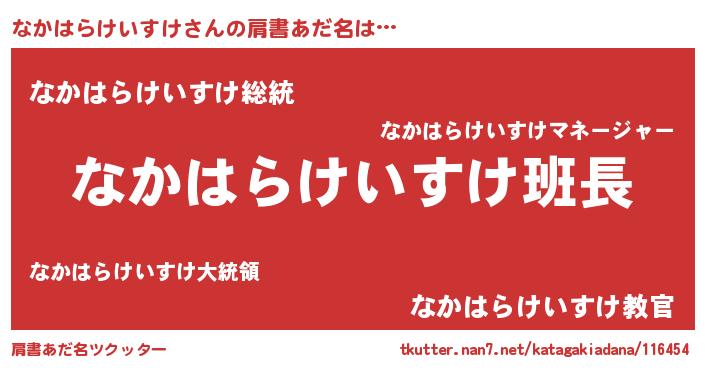 | 女子向けラノベタイトル風あだ名 | 『なかはらけいすけは平凡を望む』 |
