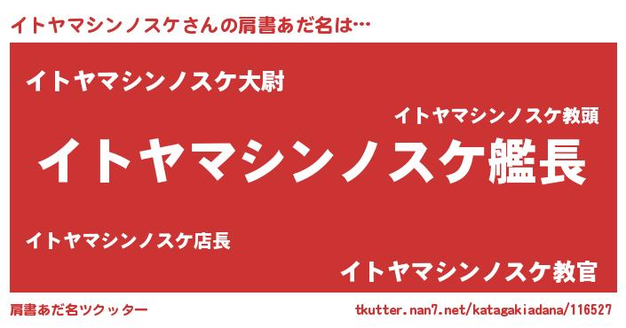 | 伝説のあだ名 | 『古文書に記された暗殺者イトヤマシンノスケ』 |
