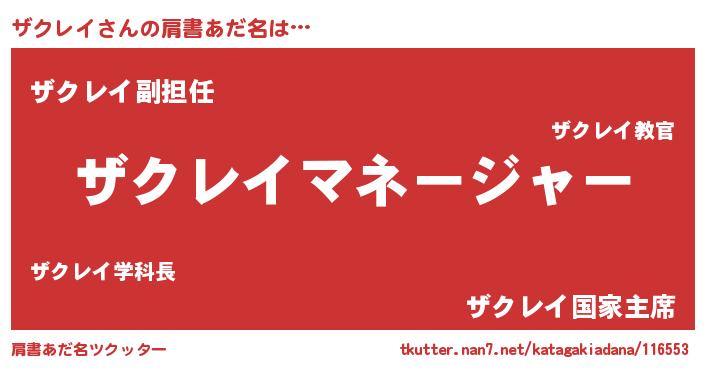 | 意味不明あだ名 | 『永久保存ザクレイ』『自称ザクレイ』 |