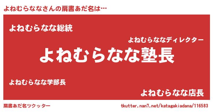 | ポケモン風あだ名 | 『ヒヨネムラナナ』『ヨネセウス』 |