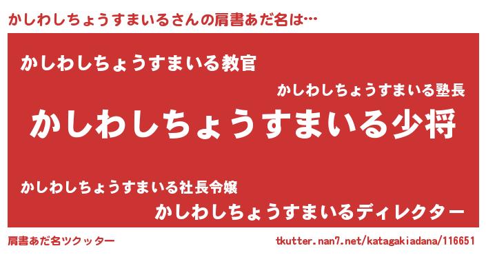 | 伝説のあだ名 | 『孤高の遊び人かしわしちょうすまいる』 |
