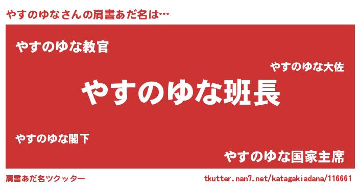 | 男性向けラノベタイトル風あだ名 | 『ダンジョンにやすのゆなを求めるのは間違っているだろうか』 |