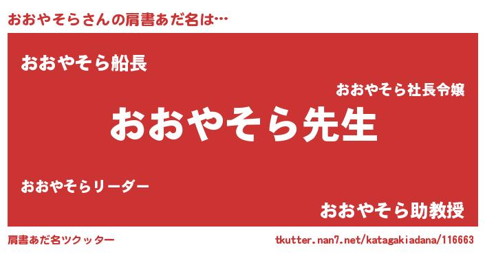 | 伝説のあだ名 | 『古より伝わる吟遊詩人おおやそら』 |