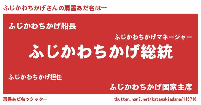 | 意味不明あだ名 | 『自称ふじかわちかげ』 |