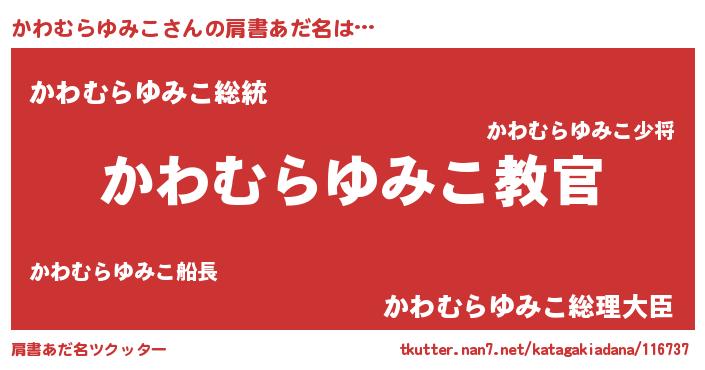 | 男性向けラノベタイトル風あだ名 | 『この素晴らしい世界にかわむらゆみこを!』 |