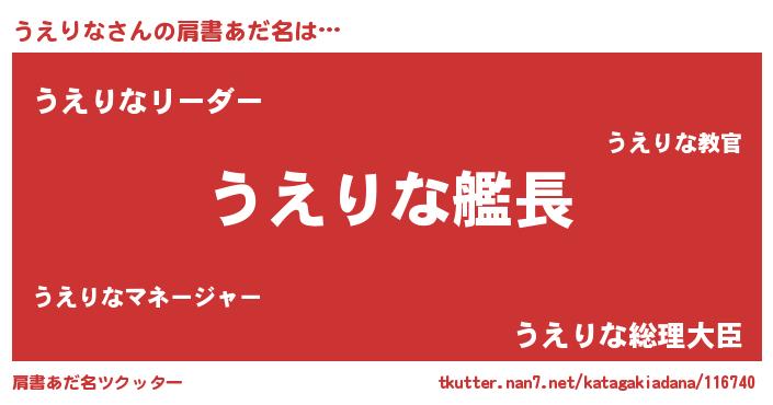 | 欧米人風あだ名 | 『うえりな・ステッグマイヤー』 |