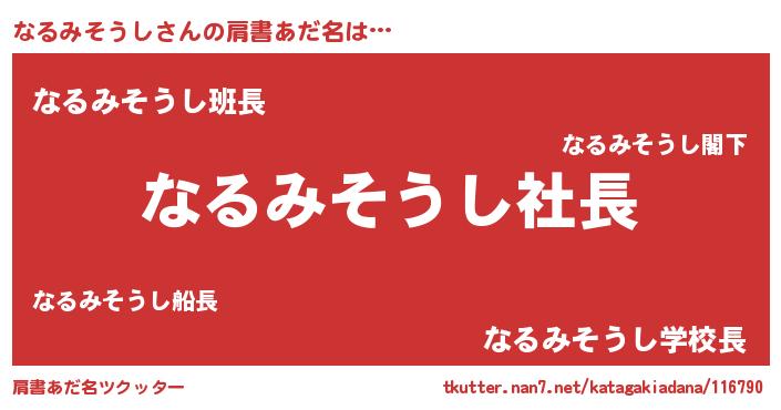 | ヒーロー風カッコイイあだ名 | 『スーパーナルミソウシ』『暗黒騎士ナル』 |