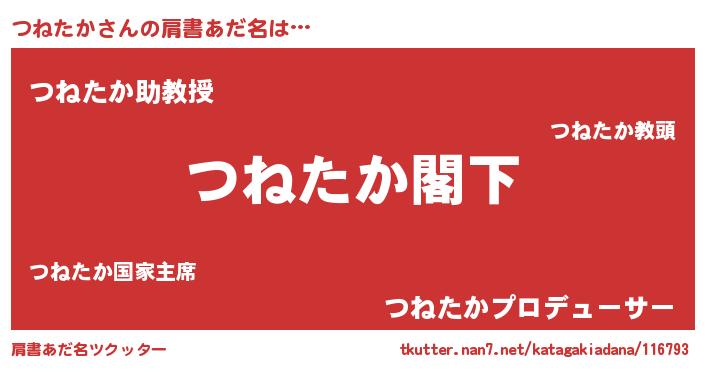 | 意味不明あだ名 | 『自称つねたか』『永久保存つねたか』 |