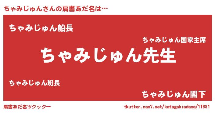 | 男性向けラノベタイトル風あだ名 | 『ちゃみじゅんという概念が存在しない退屈な世界 』 |