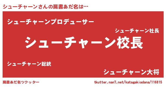 | ヘコむあだ名 | 『シューチャーン(笑)』『シュもー』 |