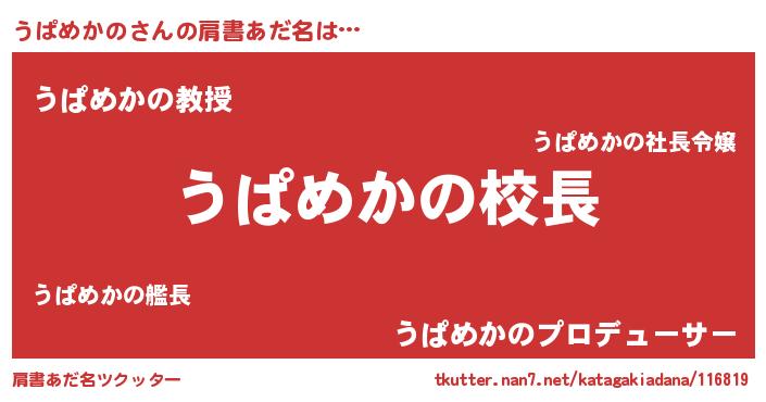 | 意味不明あだ名 | 『永久保存うぱめかの』『自称うぱめかの』 |