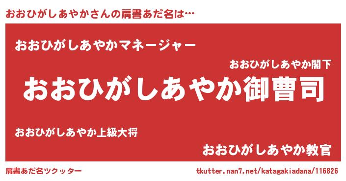| 男性向けラノベタイトル風あだ名 | 『おおひがしあやかの憂鬱』 |