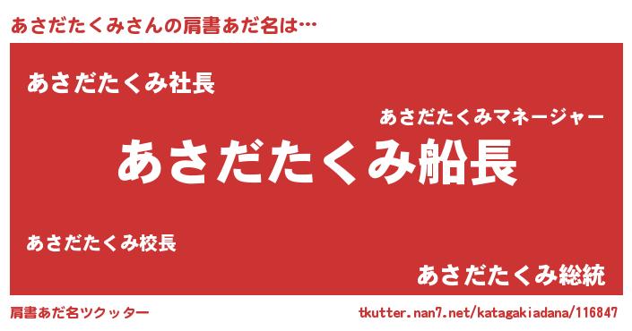 | ヒーロー風カッコイイあだ名 | 『スーパーアサダタクミ』『仮面アサダー』 |