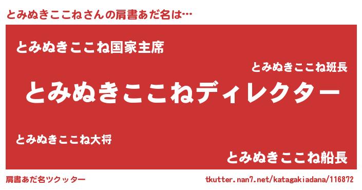 | ファンタジー風あだ名 | 『エターナルトミヌキココネー』 |