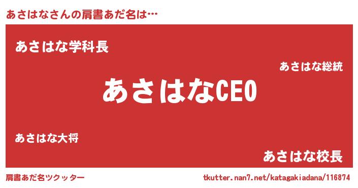 | 男性向けラノベタイトル風あだ名 | 『あさはなの憂鬱』『アサハナスレイヤー』 |