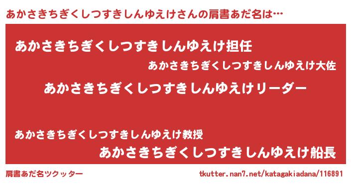 | 意味不明あだ名 | 『とにかく怪しいあかさきちぎくしつすきしんゆえけ』 |