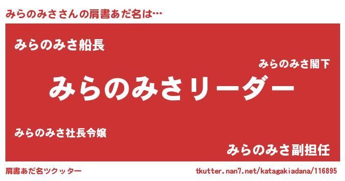 | 女子向けラノベタイトル風あだ名 | 『みらのみさは平凡を望む』 |