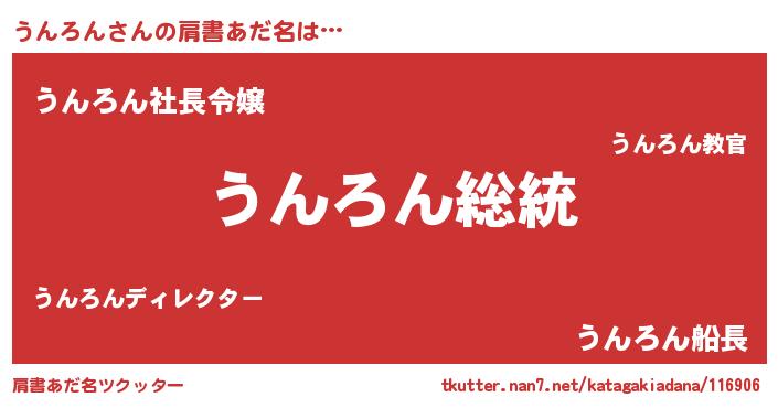 | 意味不明あだ名 | 『自称うんろん』『ペロリンうんろん』 |