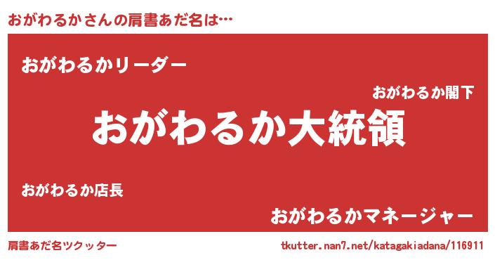 | 意味不明あだ名 | 『おがわるかフォーエバー』 |