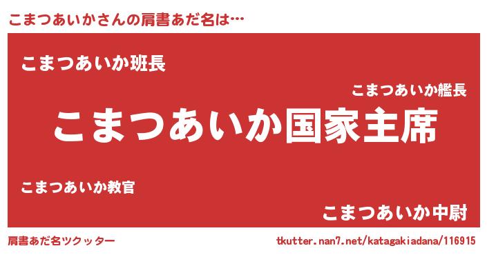 | ファンタジー風あだ名 | 『エターナルコマツアイカー』 |