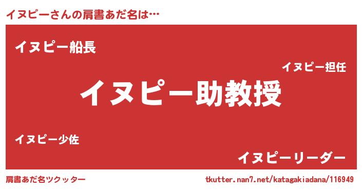 | 男性向けラノベタイトル風あだ名 | 『おまえをオタクにしてやるから、俺をイヌピーにしてくれ! 』 |