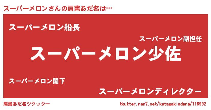 | ヒーロー風カッコイイあだ名 | 『ネオスーパーメロン』『仮面スーダー』 |