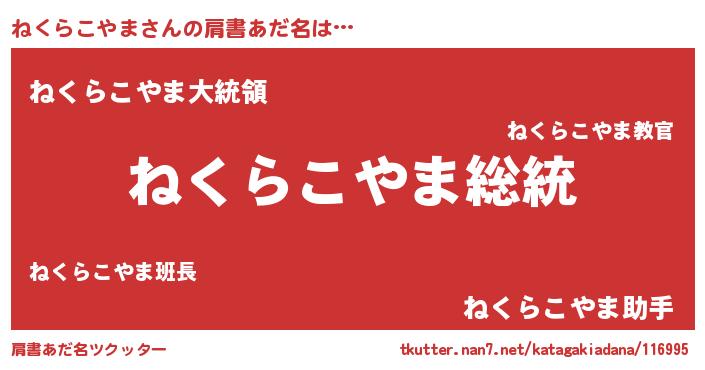 | 男性向けラノベタイトル風あだ名 | 『Re:ねくらこやまから始める異世界生活』 |
