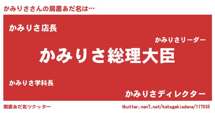 | 女子向けラノベタイトル風あだ名 | 『かみりさの婚約者』『かみりさ恋絵巻』 |