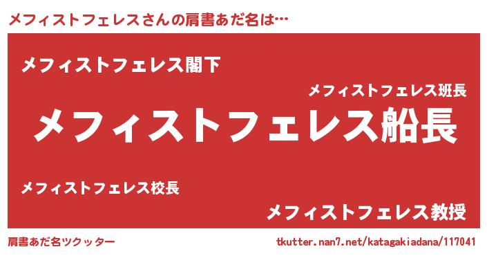 | 男性向けラノベタイトル風あだ名 | 『冴えないメフィストフェレスの育てかた』 |