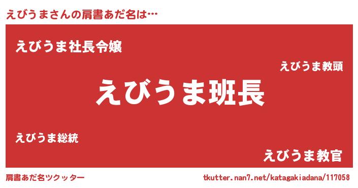 | ヒーロー風カッコイイあだ名 | 『暗黒騎士エビ』『スーパーエビウマ』 |