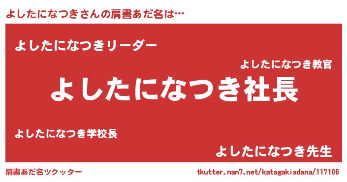 | ポケモン風あだ名 | 『ヨシチュウ』『ヒヨシタニナツキ』 |