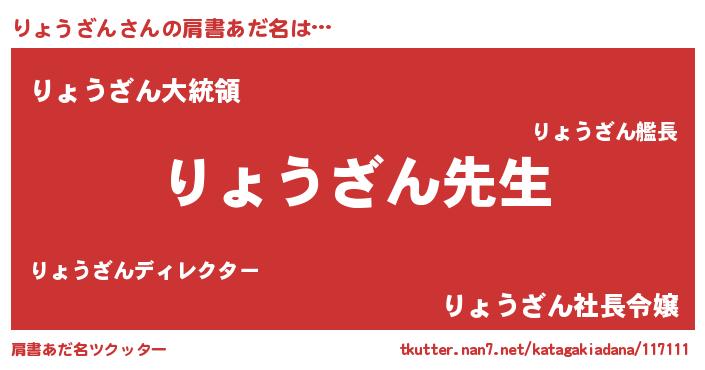 | 男性向けラノベタイトル風あだ名 | 『りょうざんという概念が存在しない退屈な世界 』 |
