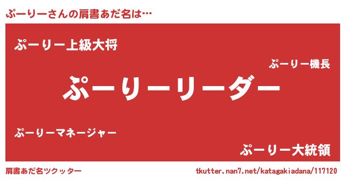 | 意味不明あだ名 | 『とにかく怪しいぷーりー』 |