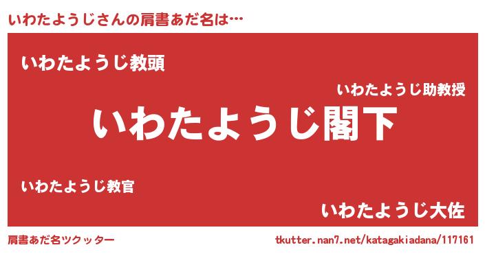 | 男性向けラノベタイトル風あだ名 | 『Re:いわたようじから始める異世界生活』 |